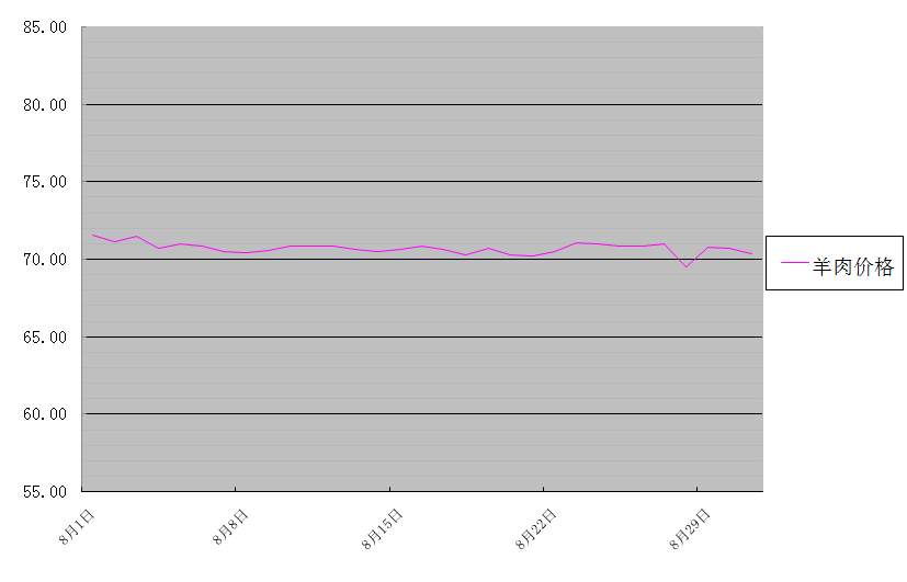 牛肉批發(fā)均價(jià)為75.79元/公斤,環(huán)比下降0.8%,同比上升3.4%。羊肉批發(fā)均價(jià)為70.70元/公斤,環(huán)比下降2.4%,同比上升0.3%。