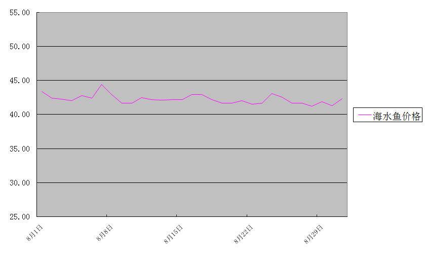 大帶魚(yú)、大黃花魚(yú)兩種海水魚(yú)批發(fā)均價(jià)為42.23元/公斤,環(huán)比下降1.6%,同比上升7.2%。